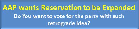 The reservation politics based on caste started by Mr V.P.Singh has created complete division of people in India and it appears that AAP will join other political parties to exploit the caste and other divisive policies.